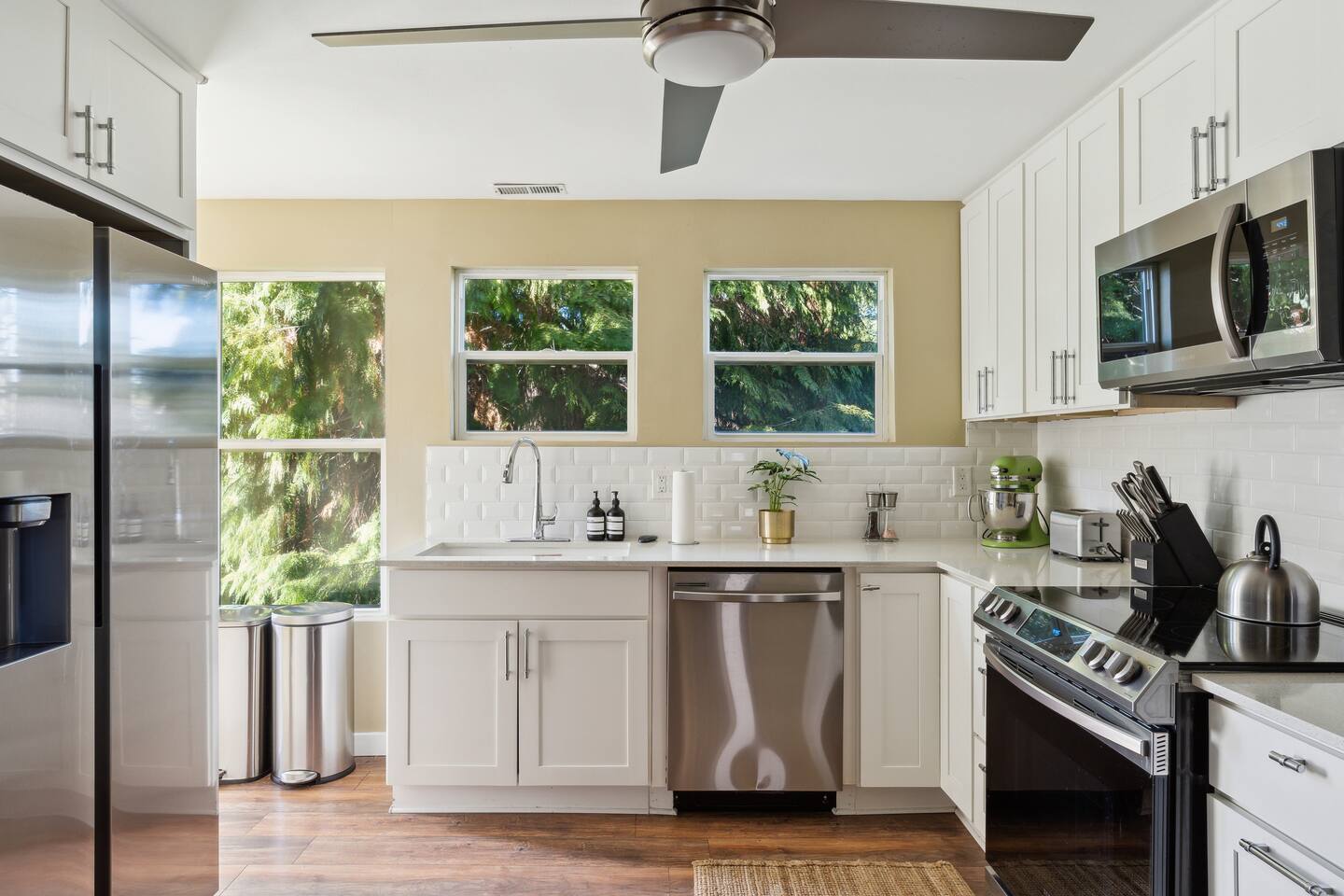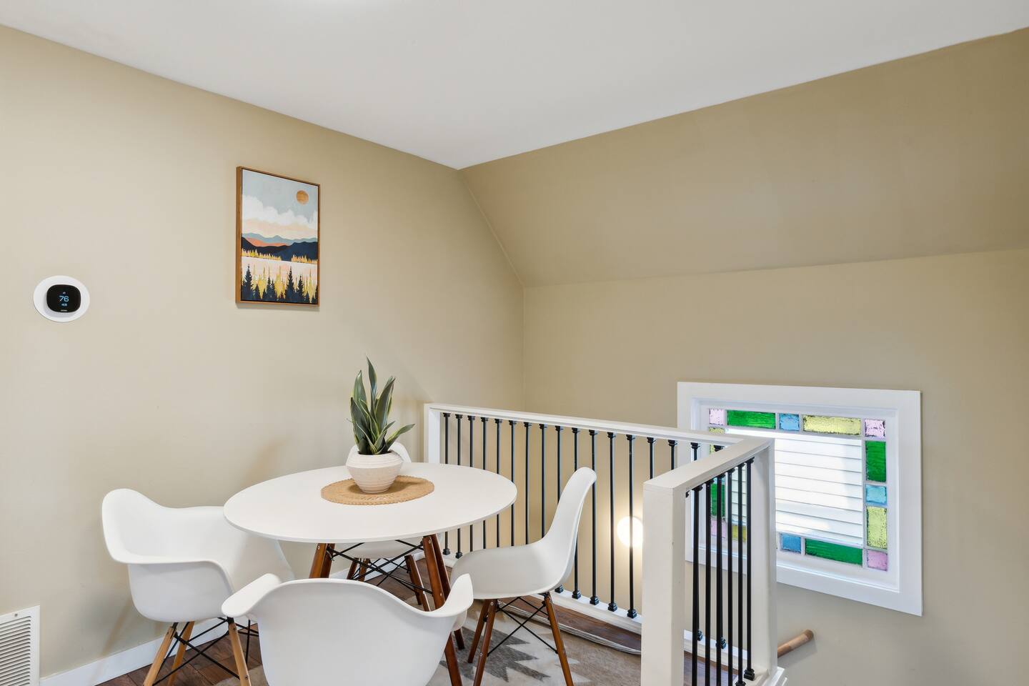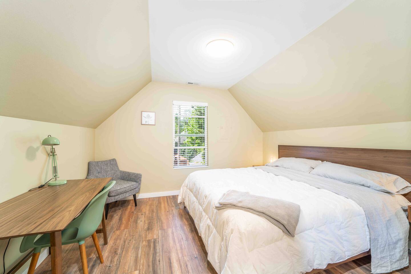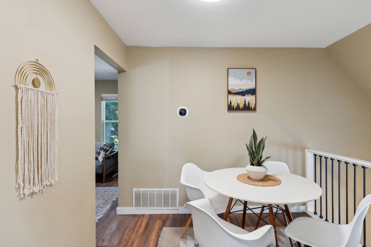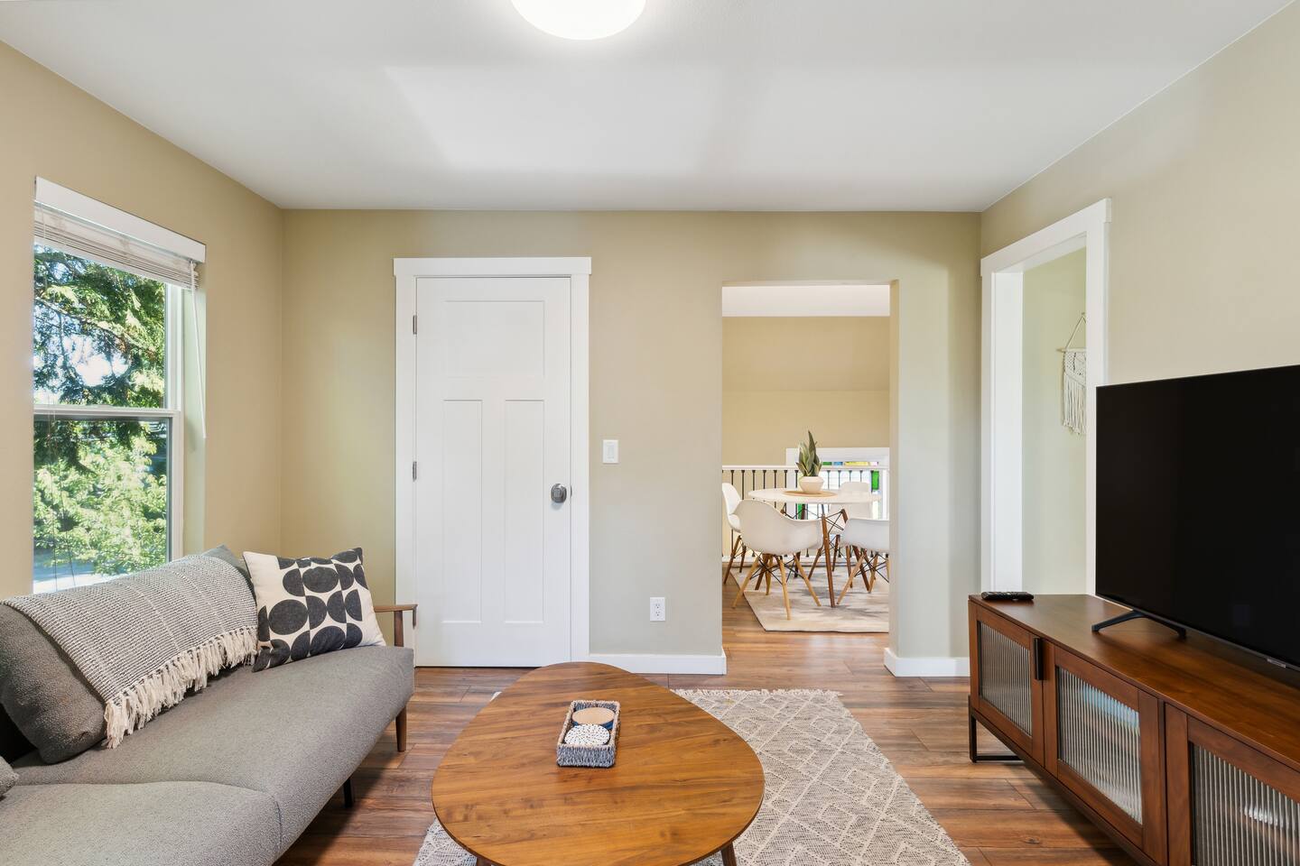 Experience all that the Central District has to offer while staying here at our Cheerful Duplex! Conveniently located just 10 minutes from downtown and within walking distance to so much of the excitement Seattle has to offer, this is the perfect place for your getaway! The 2BR/1BA unit is a serene setting nestled in a neighborhood that offers amazing amenities with everything your family needs! Inside the home, you'll have plenty of space to enjoy delicious meals, play board games, or enjoy the yard! Down the hallway, you'll find the bedrooms - one with a king sized Soft Beauty Rest mattress and the other with a queen-sized Medium Firm Beauty Rest mattress. The unit was recently updated and a stackable washer/dryer is available for use. The living room offers plenty of seating, a large Smart TV, games, and lots of natural light. The kitchen is fully equipped with items like a stand mixer, coffee maker, toaster, and cooking essentials... you will have everything you need but the ingredients! The backyard is shared between both units and features a small lawn, a hammock, and a 22” charcoal grill. The grill utensils are provided, and charcoal is available at the corner market. If you need more space, check availability for our 2nd listing “Charming Duplex: Downstairs”.