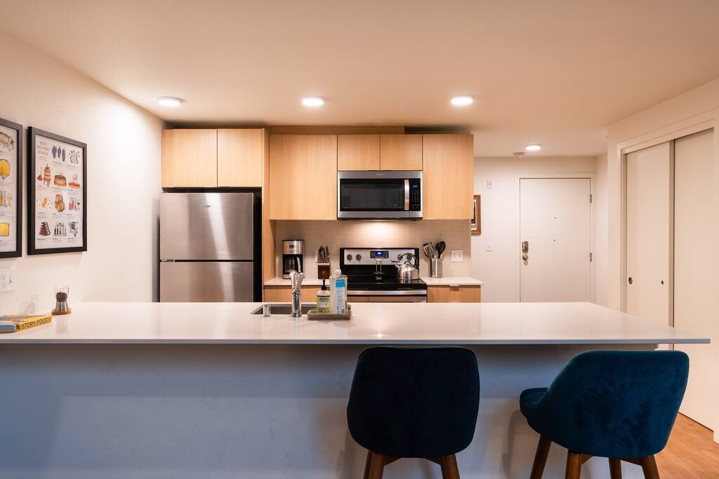 Welcome to your stylish home base in one of Seattle’s most vibrant neighborhoods. This modern loft features soaring ceilings, warm contemporary finishes, and thoughtfully curated décor that creates an inviting, comfortable stay for both short visits and longer getaways. Whether you’re traveling solo, as a couple, or with friends, the layout offers privacy and relaxation.