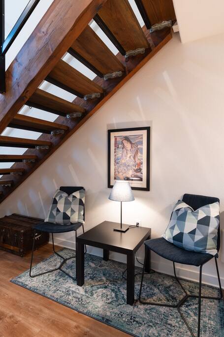This modern Wallingford loft features soaring ceilings, bright natural light, and a stylish open layout. The upstairs loft bedroom offers a cozy retreat, while the main level includes a comfortable queen sofa bed, a fully equipped kitchen, and a spacious living area. Thoughtful décor, contemporary finishes, and a warm, inviting atmosphere make this the ideal home base for your Seattle stay. 🛏 Sleeping Arrangements *Loft Bedroom: A cozy upstairs sleeping area with a comfortable queen bed and soft linens. *Living Room: A high-quality queen sofa bed—perfect for extra guests or those who prefer to sleep on the main level. Whether you’re traveling solo, as a couple, or with friends, the layout offers privacy and relaxation. 🍳 Fully Equipped Kitchen Enjoy cooking in a sleek, modern kitchen with full-size stainless steel appliances, microwave & coffee maker, cookware, dining essentials, and thoughtful touches Perfect for leisurely breakfasts before exploring the city or a quiet dinner in. 🌆 Vibrant Location — Wallingford Step outside and you’re in the heart of Wallingford, one of Seattle’s most walkable and lively neighborhoods. You'll be surrounded by: Trendy restaurants & bars Local coffee shops & bakeries Boutiques, parks, and entertainment All while being just 5 miles from Downtown Seattle and minutes from Green Lake, Fremont, and the University District. 🌤 Rooftop Deck with Fire Pit Relax above the city on the building’s rooftop terrace, featuring: A cozy outdoor fire pit Lounge seating Dining areas perfect for sunsets or morning coffee It’s a serene spot to unwind after a day of sightseeing. 🚗 Parking The building offers first-come, first-served parking in the shared lot (not dedicated), making it convenient to come and go. 📺 Comfort & Convenience The loft includes: Fast Wi-Fi Smart TV for streaming In-unit washer & dryer Bright natural light and stylish furniture