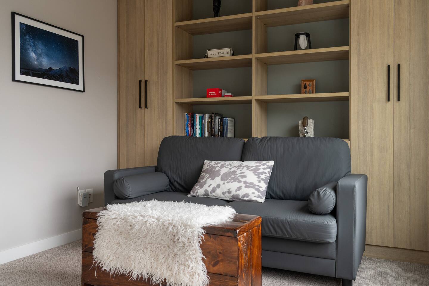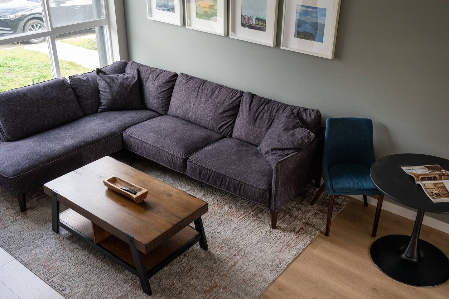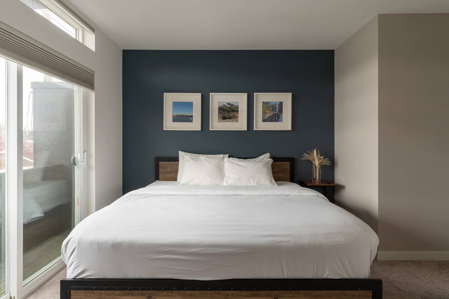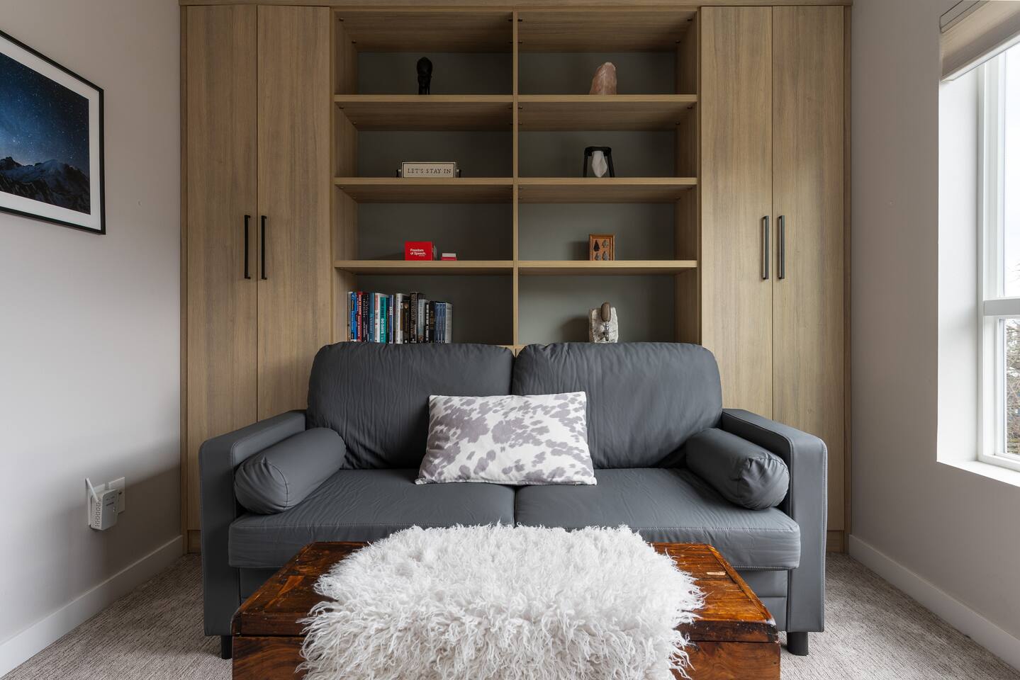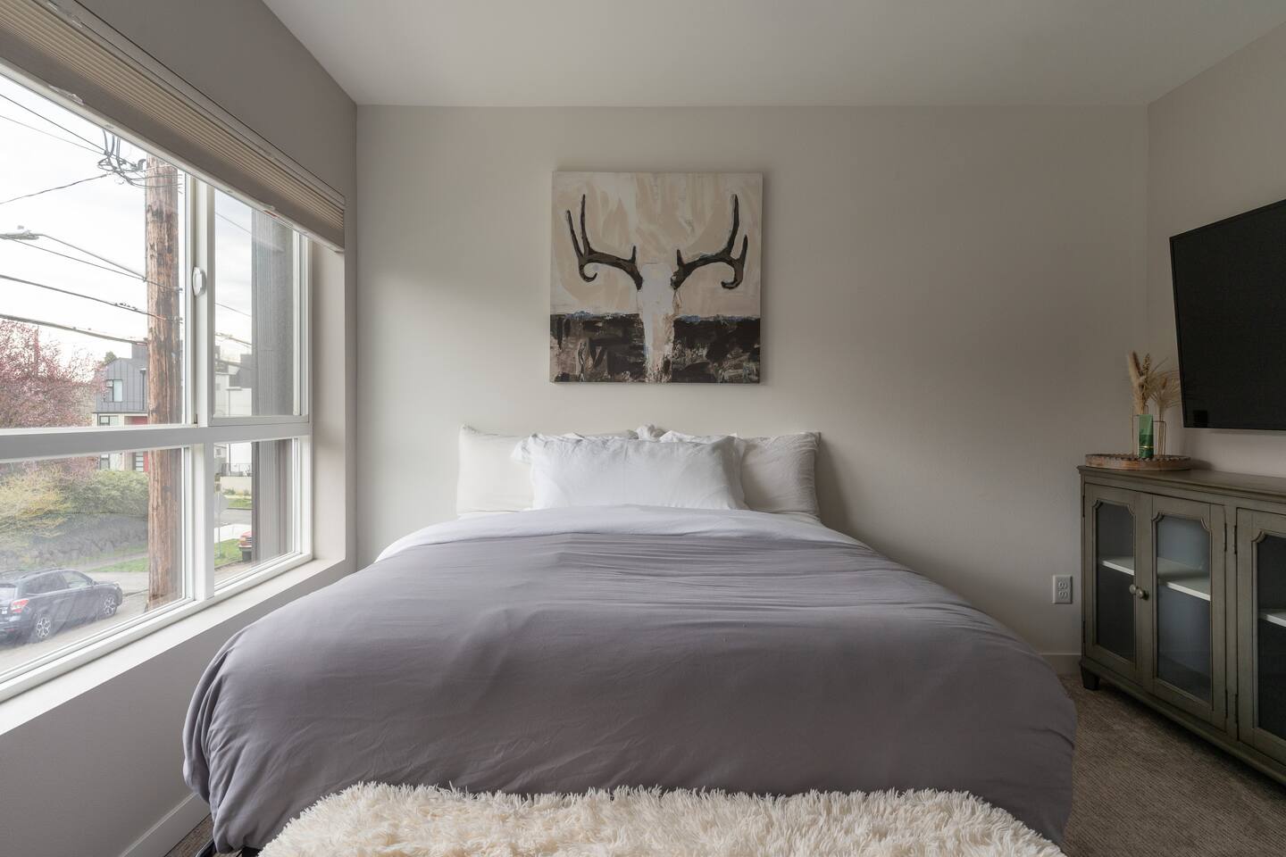 Our new townhome is thoughtfully furnished and cozy. With a rooftop lounge & fire pit as well as a back patio there's plenty of space to hang out and entertain! *Fire pit - Propane tank included, but the guest is responsible for filling The master bedroom has a super comfy king bed, and the second bedroom has a nice queen-sized bed. Our modern kitchen has all the basics, and our living room has a very cozy sectional couch. We also have a "flex" space with a sleeper sofa. *AC is a mini split located on the ground floor.