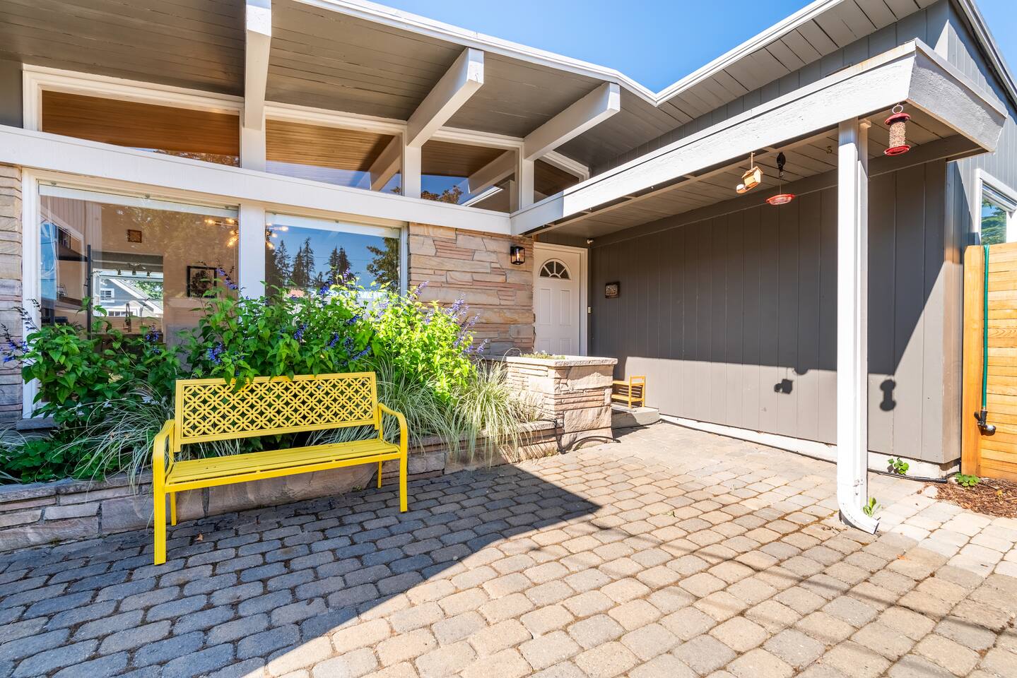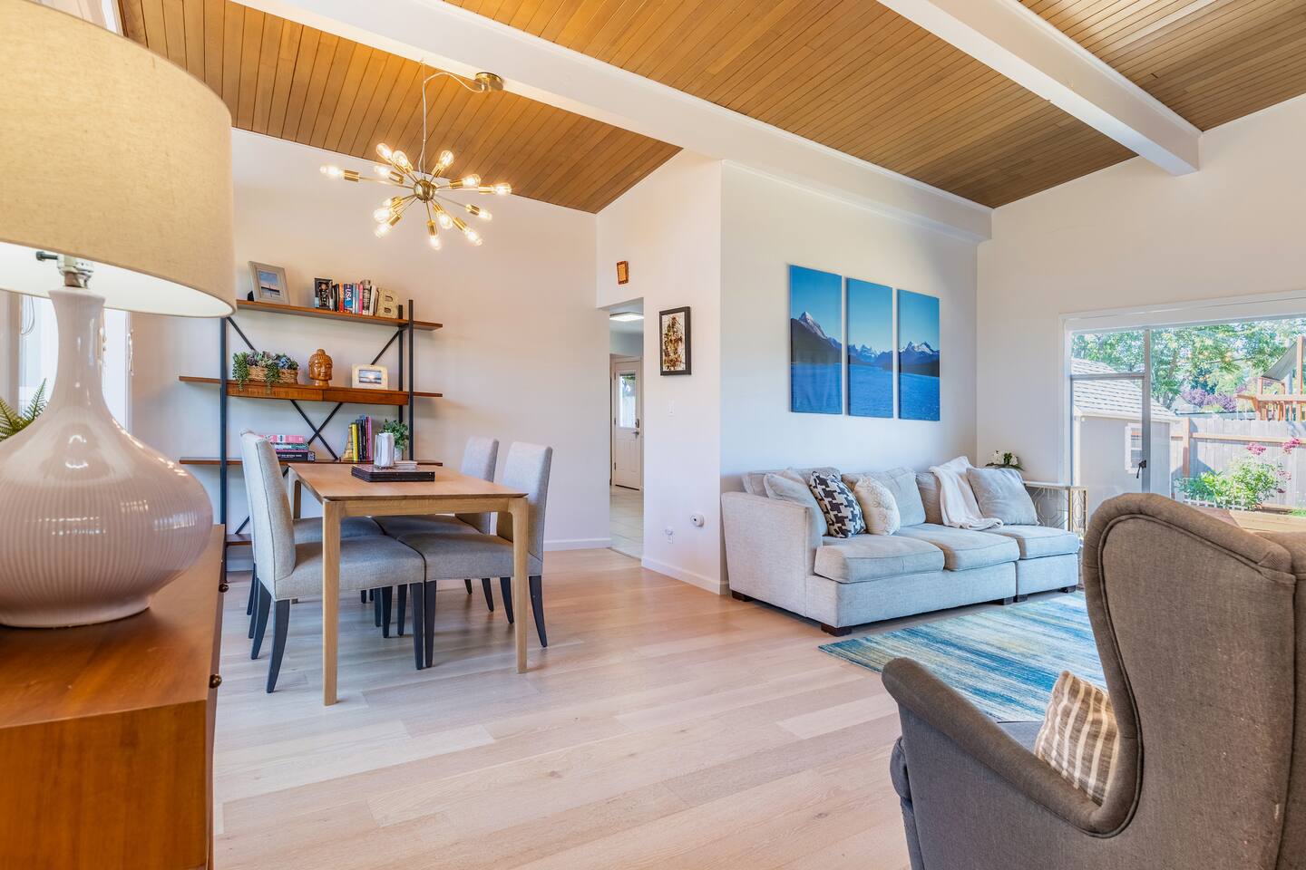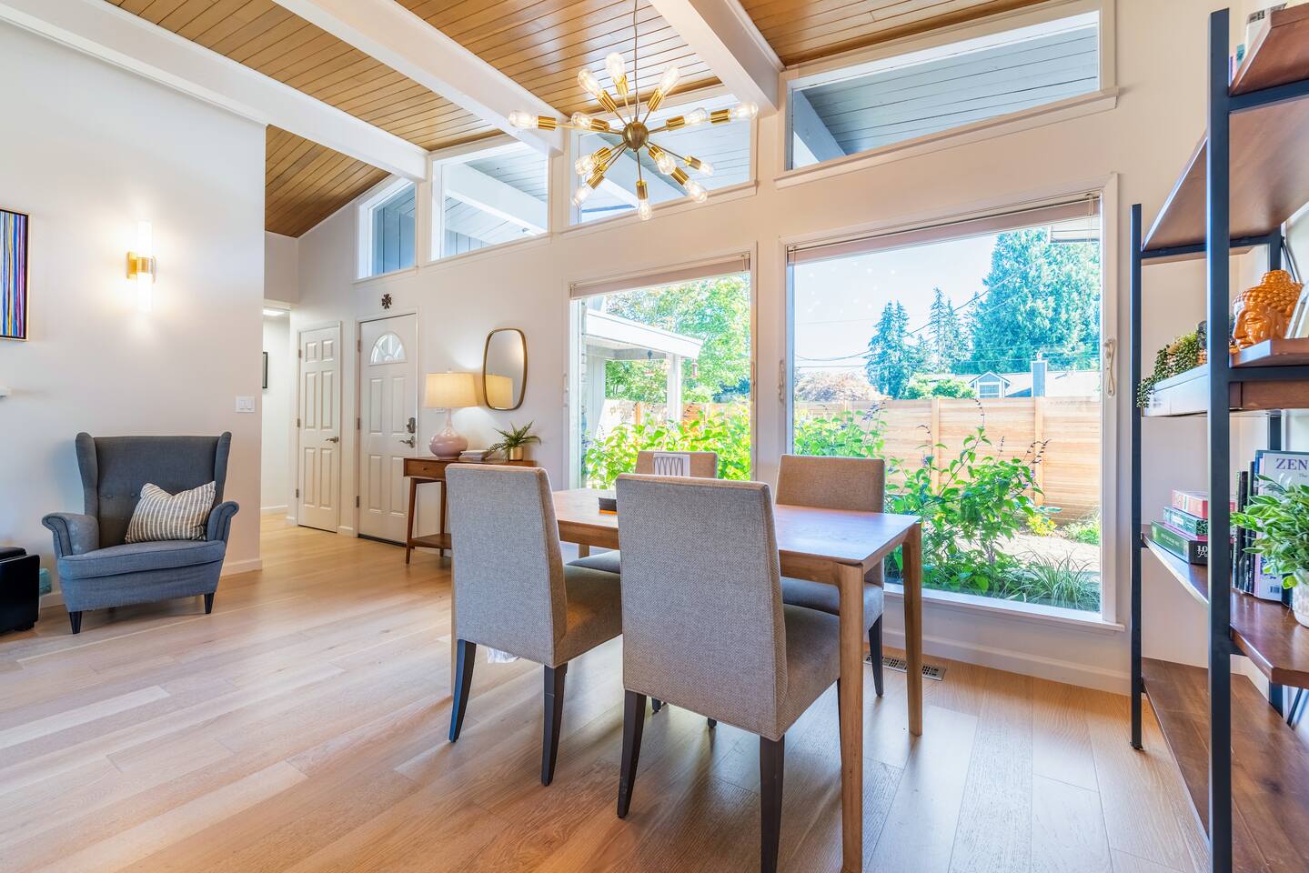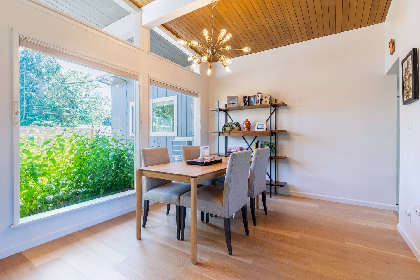 Charming Mid-Century Modern Single Story Home! This beautifully maintained property features a spacious and open floor plan. Expansive living area with vaulted ceilings and enormous windows, which flood the space with natural light and makes the outdoors feel close at hand. Situated in a picturesque setting and conveniently located near numerous amenities, this home is a perfect blend of comfort and style.