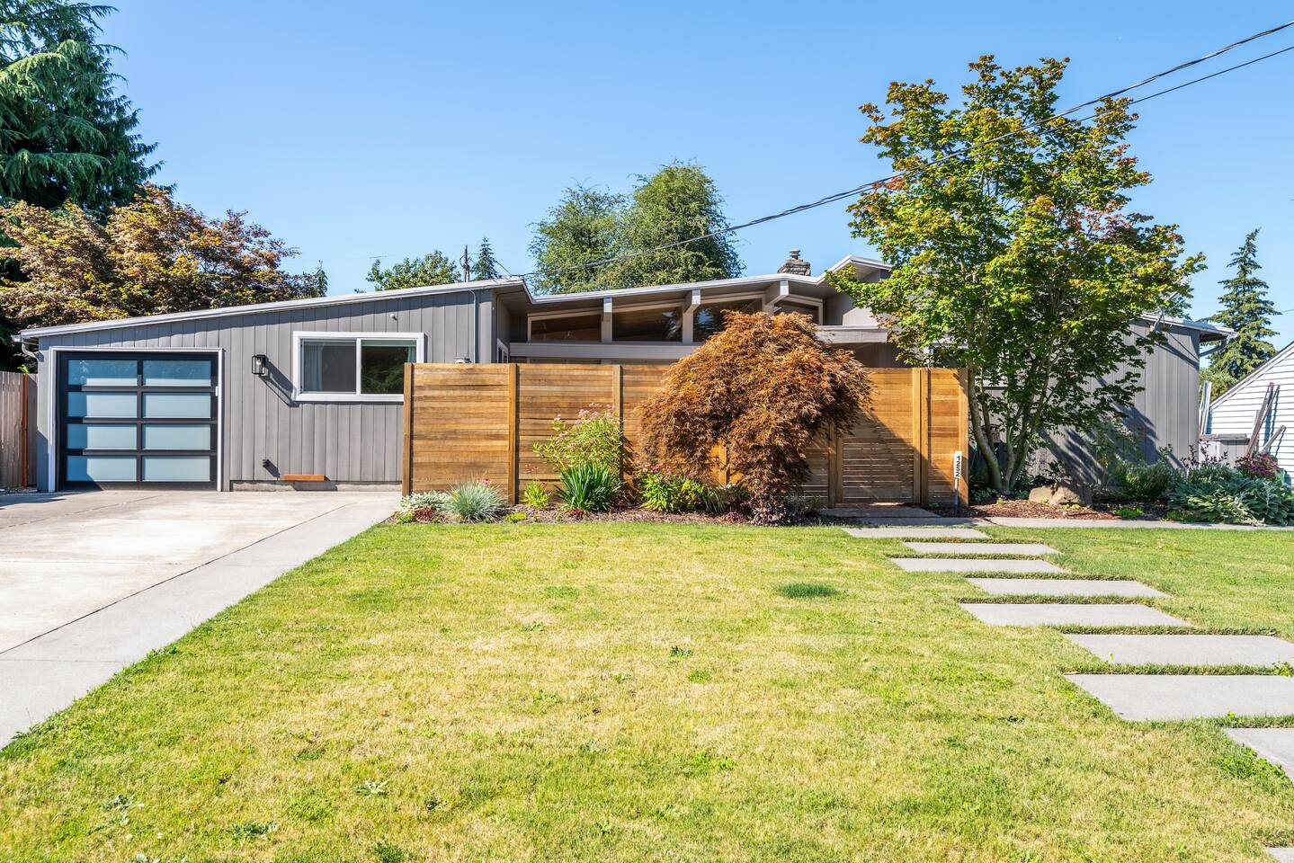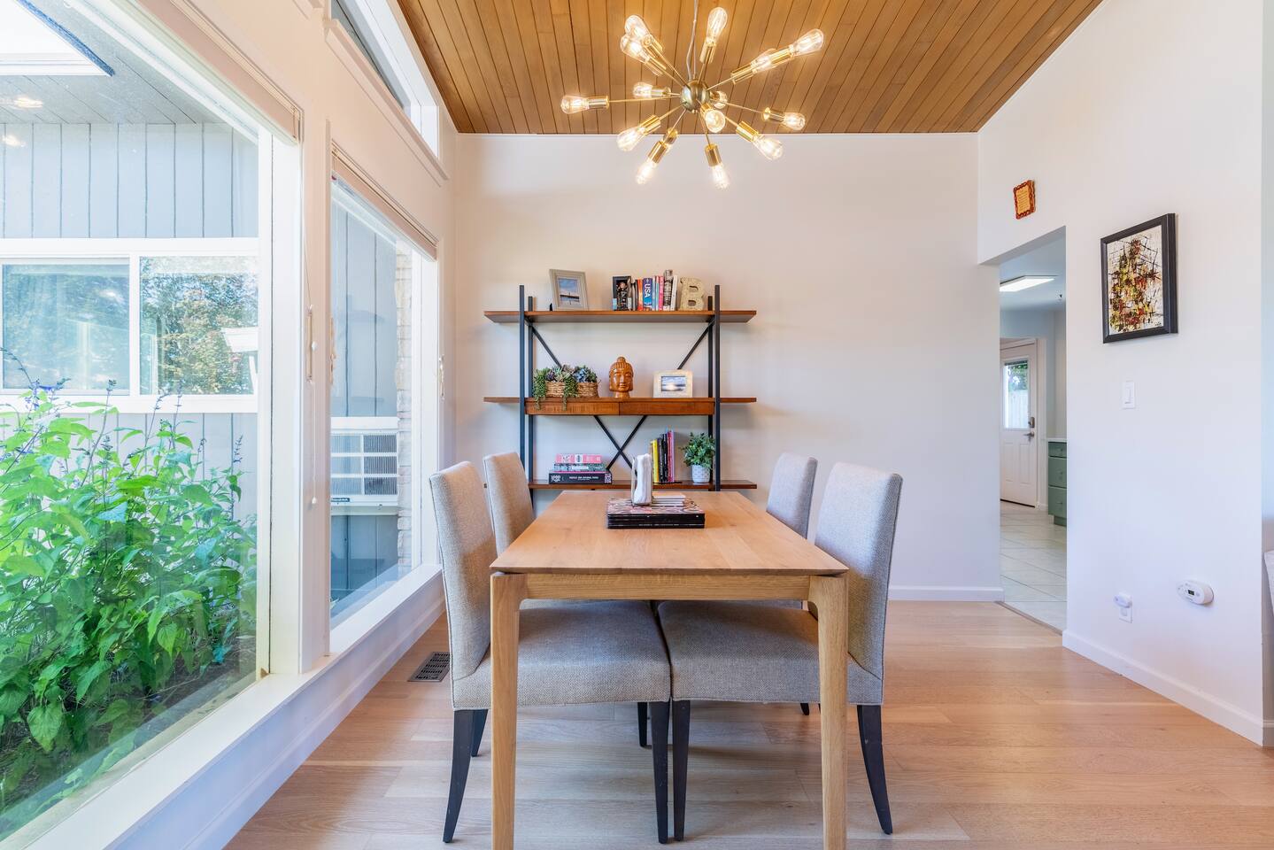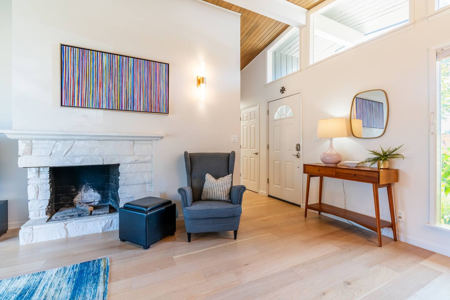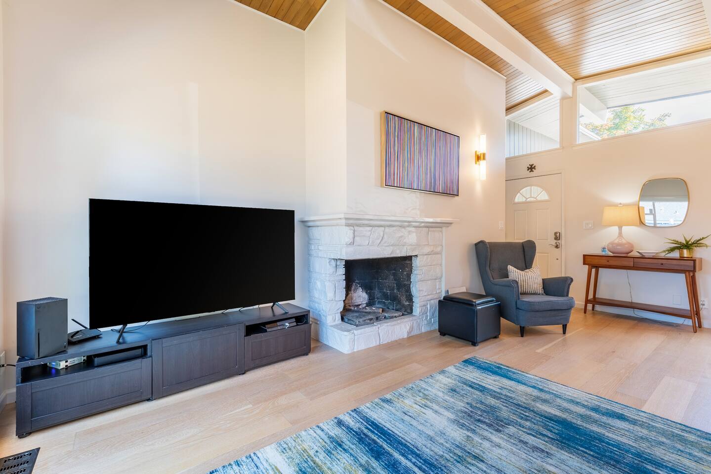 Charming Mid-Century Modern Single Story Home! This beautifully maintained property features a spacious and open floor plan. Expansive living area with vaulted ceilings and enormous windows, which flood the space with natural light and makes the outdoors feel close at hand. Situated in a picturesque setting and conveniently located near numerous amenities, this home is a perfect blend of comfort and style.