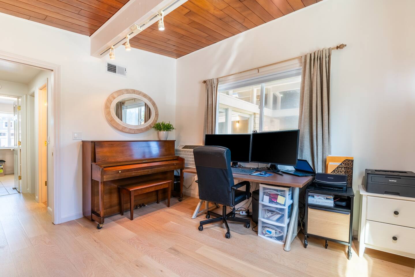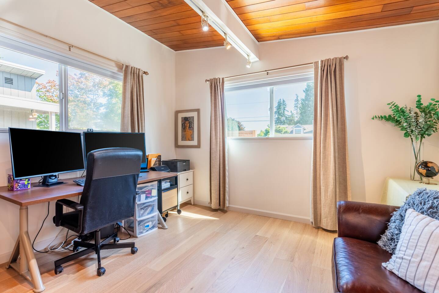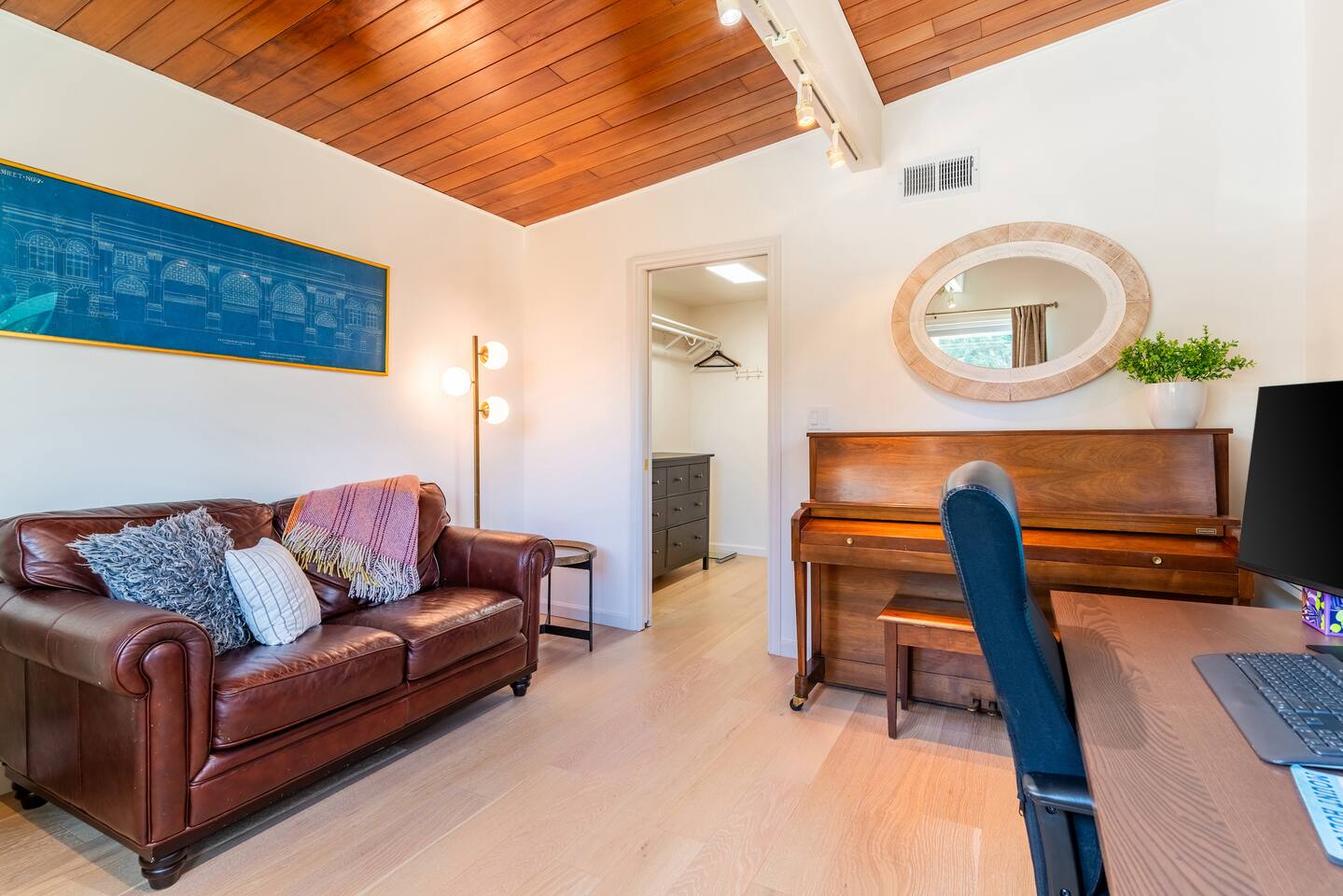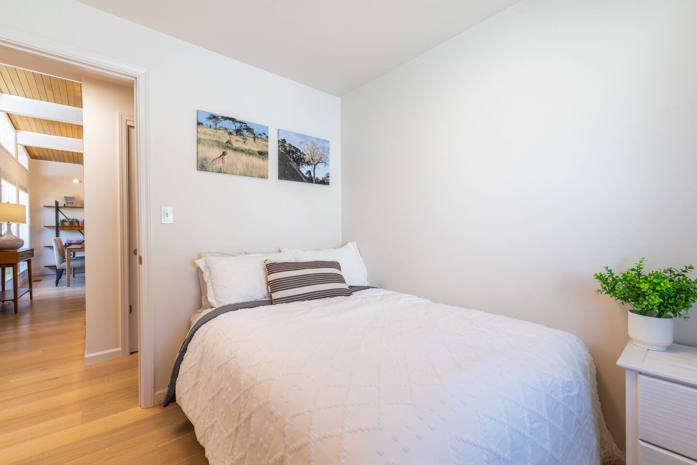 Charming Mid-Century Modern Single Story Home! This beautifully maintained property features a spacious and open floor plan. Expansive living area with vaulted ceilings and enormous windows, which flood the space with natural light and makes the outdoors feel close at hand. Situated in a picturesque setting and conveniently located near numerous amenities, this home is a perfect blend of comfort and style.
